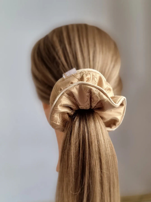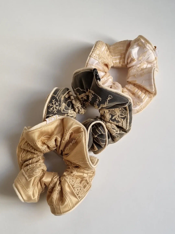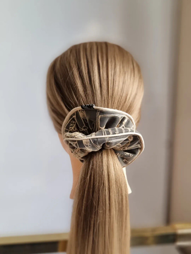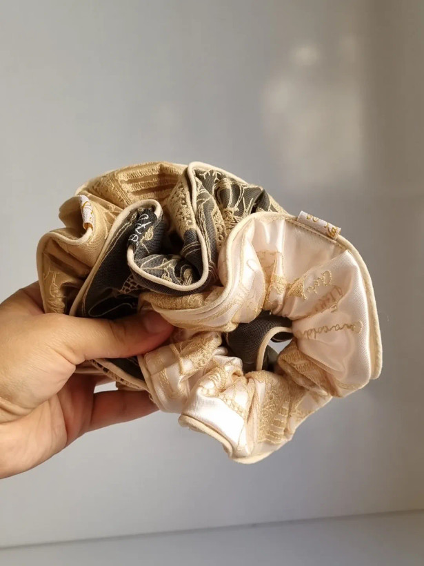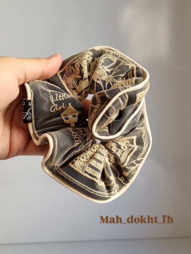 اسکرانچی گلدوزی مینیاتوری دولایه تور و ساتن