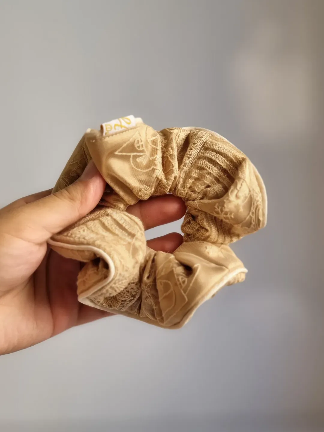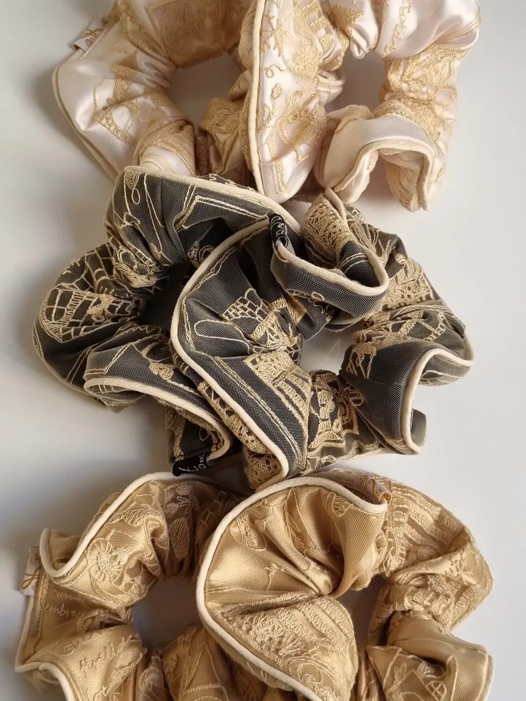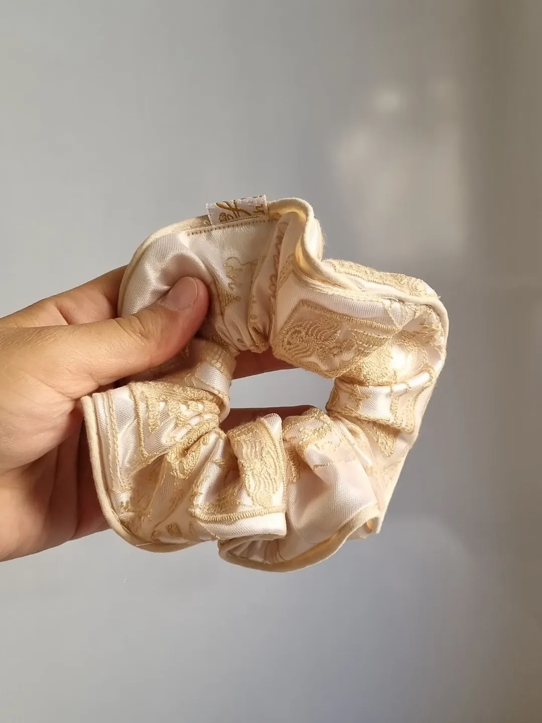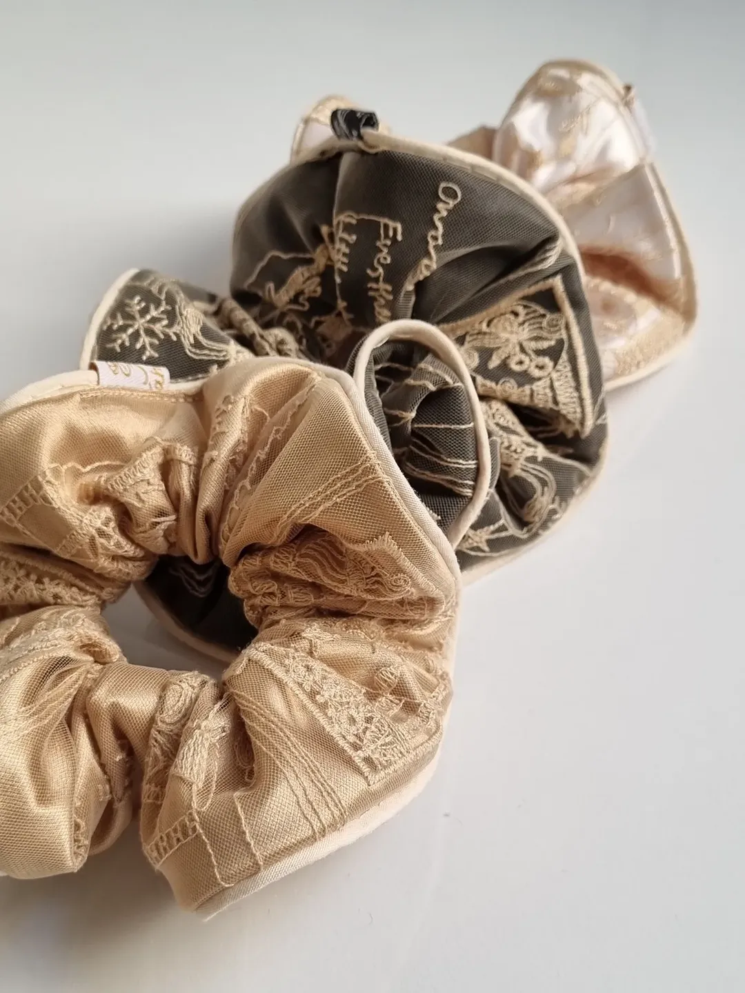 اسکرانچی گلدوزی مینیاتوری دولایه تور و ساتن