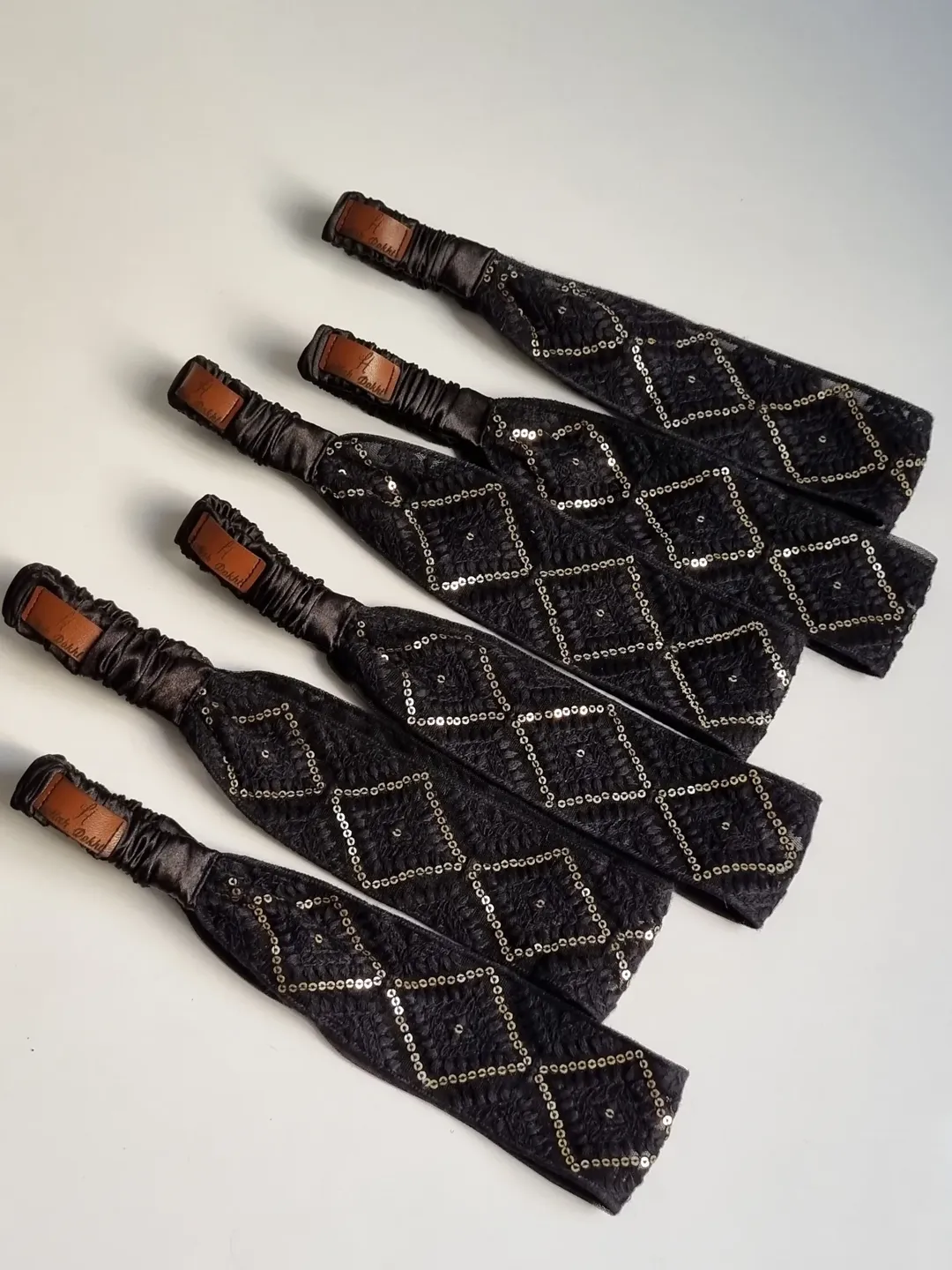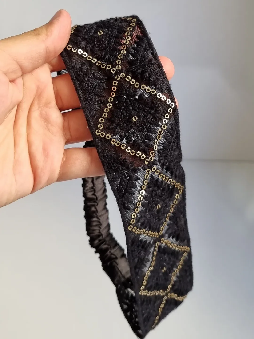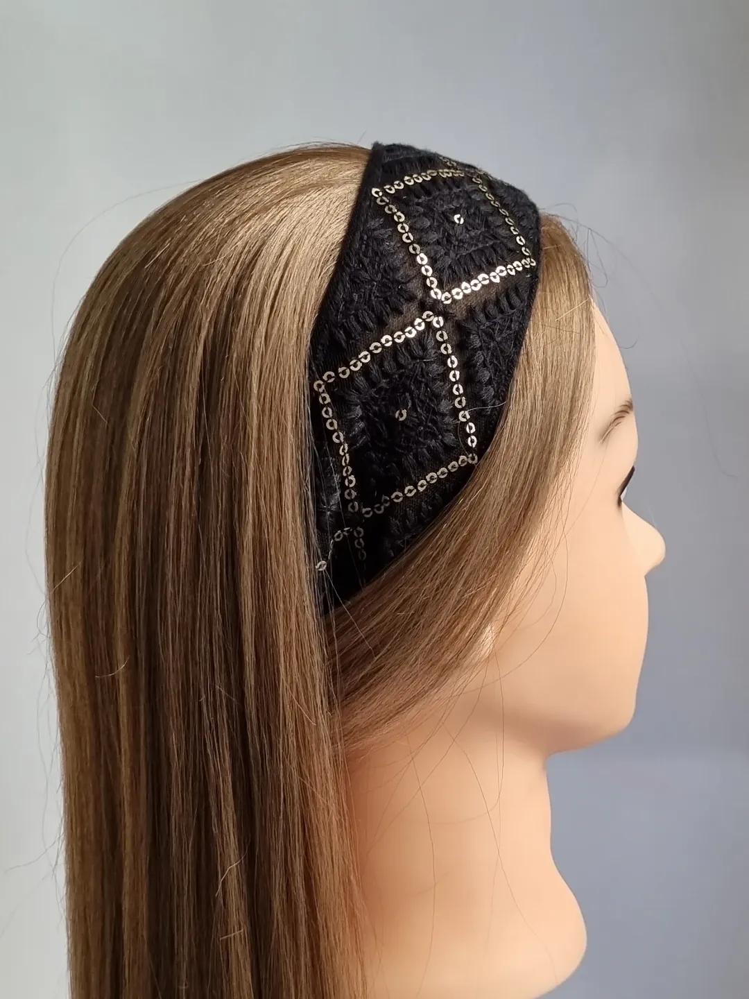 هدبند گلدوزی پارچه گلدوزی و پولک دوزی تک رنگ